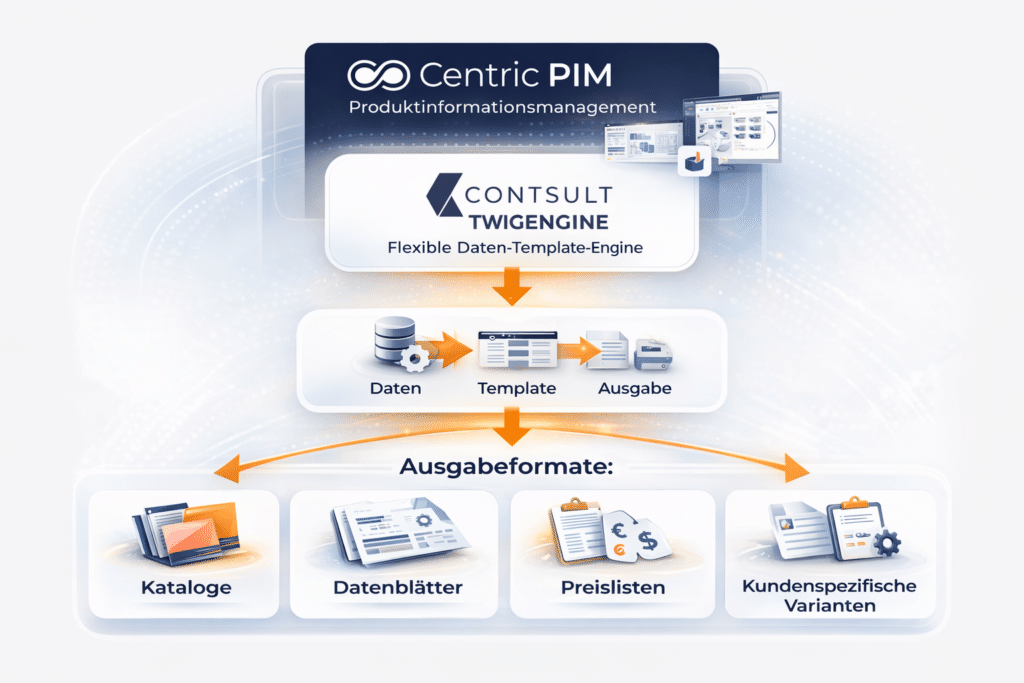 Die CONTSULT TwigEngine erzeugt Kataloge, Datenblätter und Preislisten automatisiert aus Centric PXM: ohne manuelle Layoutpflege, ohne Zwischenstände, ohne parallele Dokumentlogik.